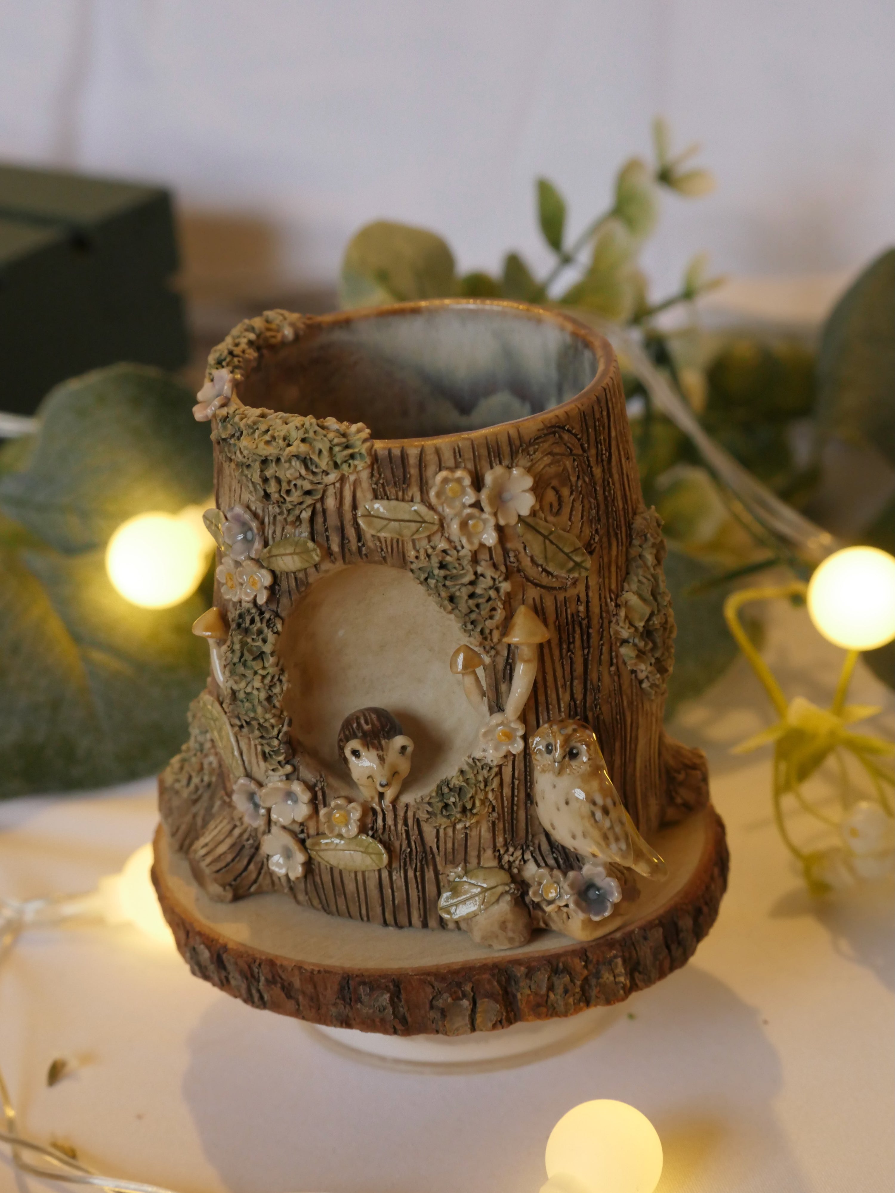 Autumnal Floral Hedgehog and Owl Tree Vase : 5.5cm Width 7cm Height