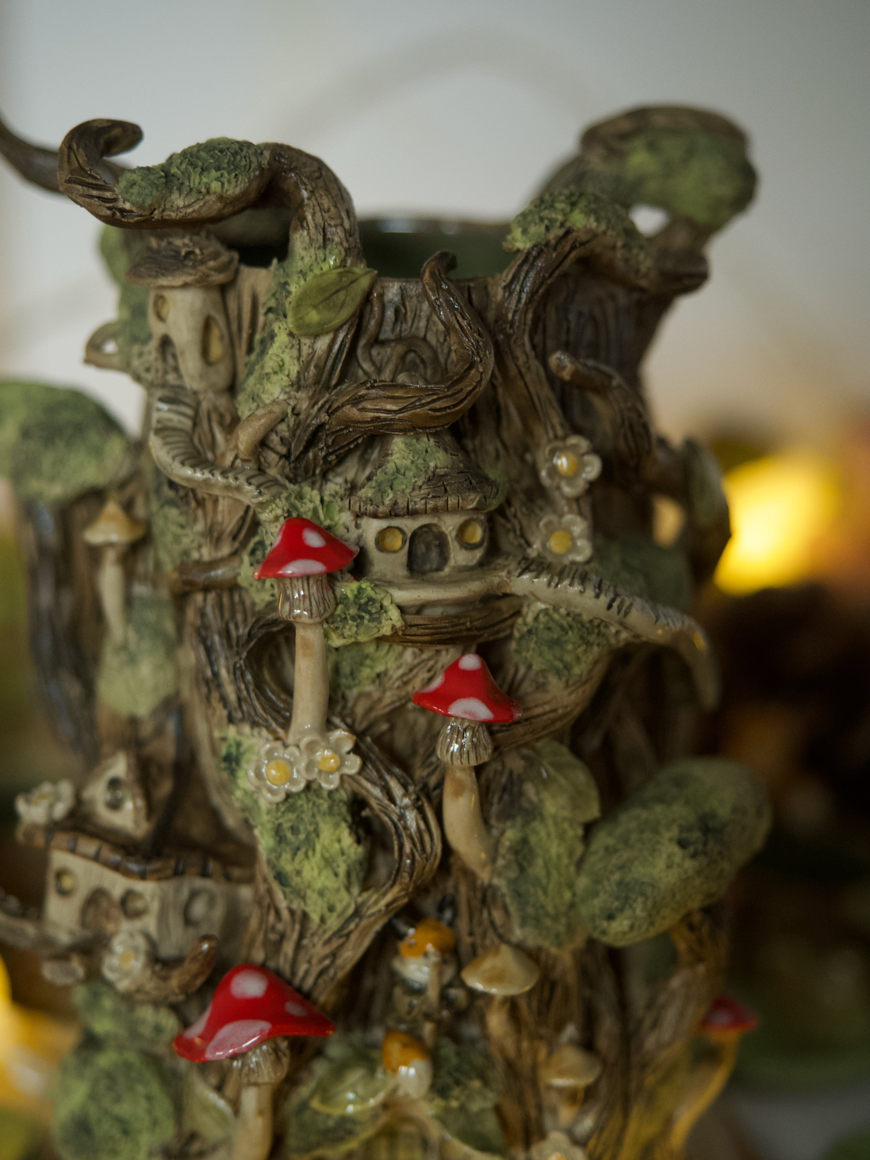 I reuse alot of packaging from friends and family and use recyclable materials as possible. I will be transparent, I do use a section of bubble wrap to protect the pieces initially (I reuse a lot of bubble wrap, I have to use it as my pieces feature a lot of small animals and parts , I’ve found this the best for keeping them safe in transit as most items are shipped overseas) before using void fill biodegradable and recyclable paper to pad each cardboard box out so it does not move in the box during transit as this is the most important , no rattling means the pottery is fully secure!