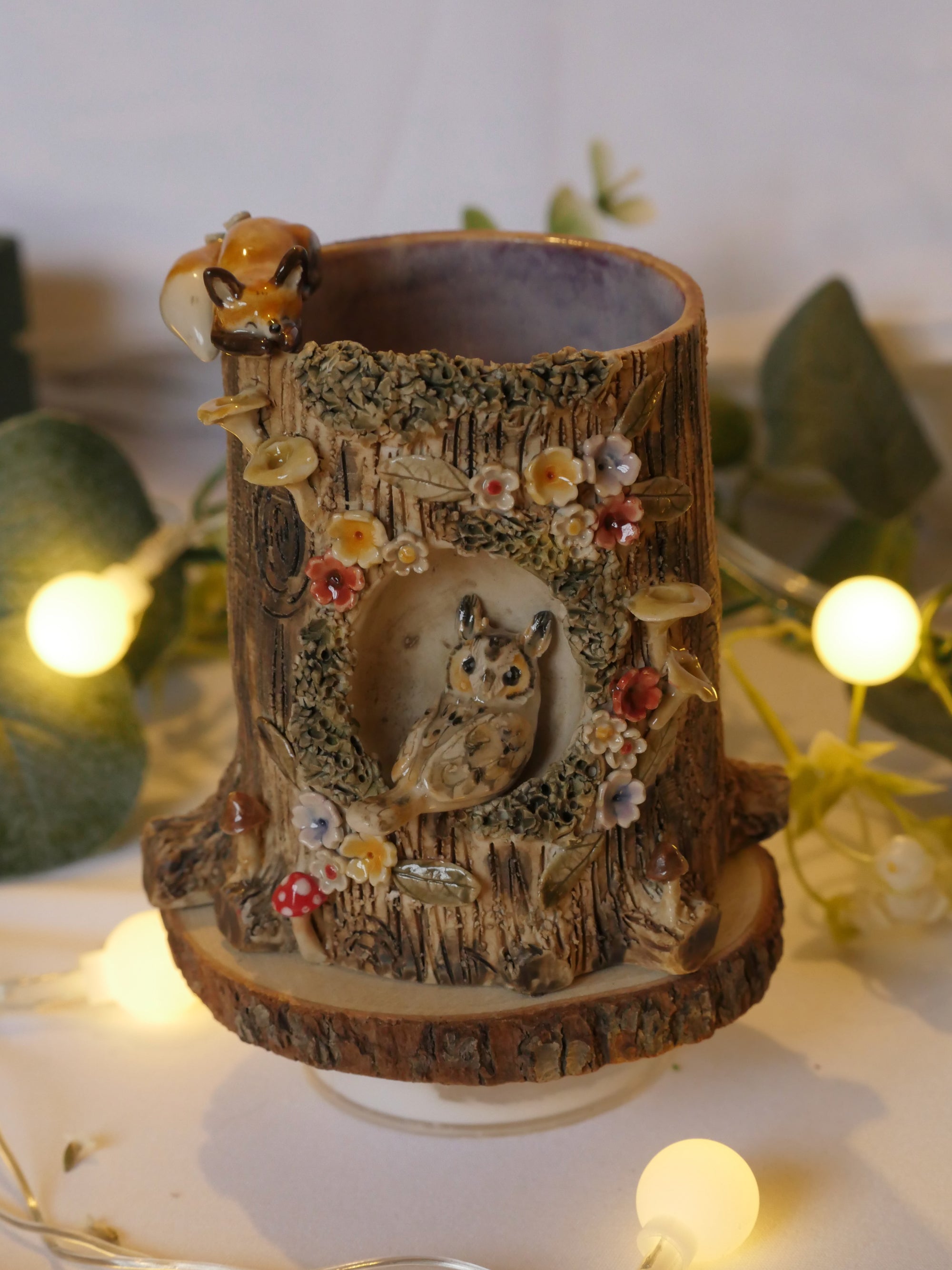 Owl and Sleeping Fox Tree Vase : 6cm Width 8cm Height