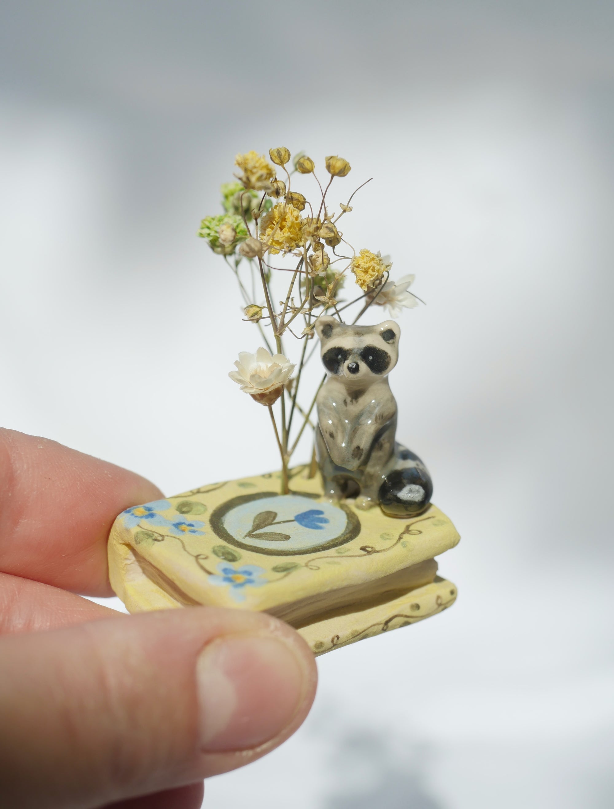 Made to order: Raccoon Book Dried Flower Miniature ( 25th November dispatch)